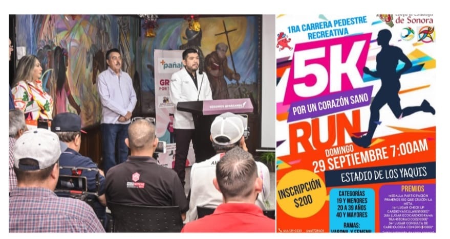 CIUDAD OBREGÓN, SONORA 19 DE SEPTIEMBRE DE 2024.- En el marco de la celebración Día Mundial del Corazón, el domingo 29 de septiembre, a partir de las 7:00 horas tendrá lugar en el estadio de los Yaquis, la carrera de 5 mil metros, denominada Carrera Pedestre Recreativa 5K por un Corazón Sano, organizada por el Ayuntamiento de Cajeme, en coordinación con el Colegio de Cardiología de Sonora.