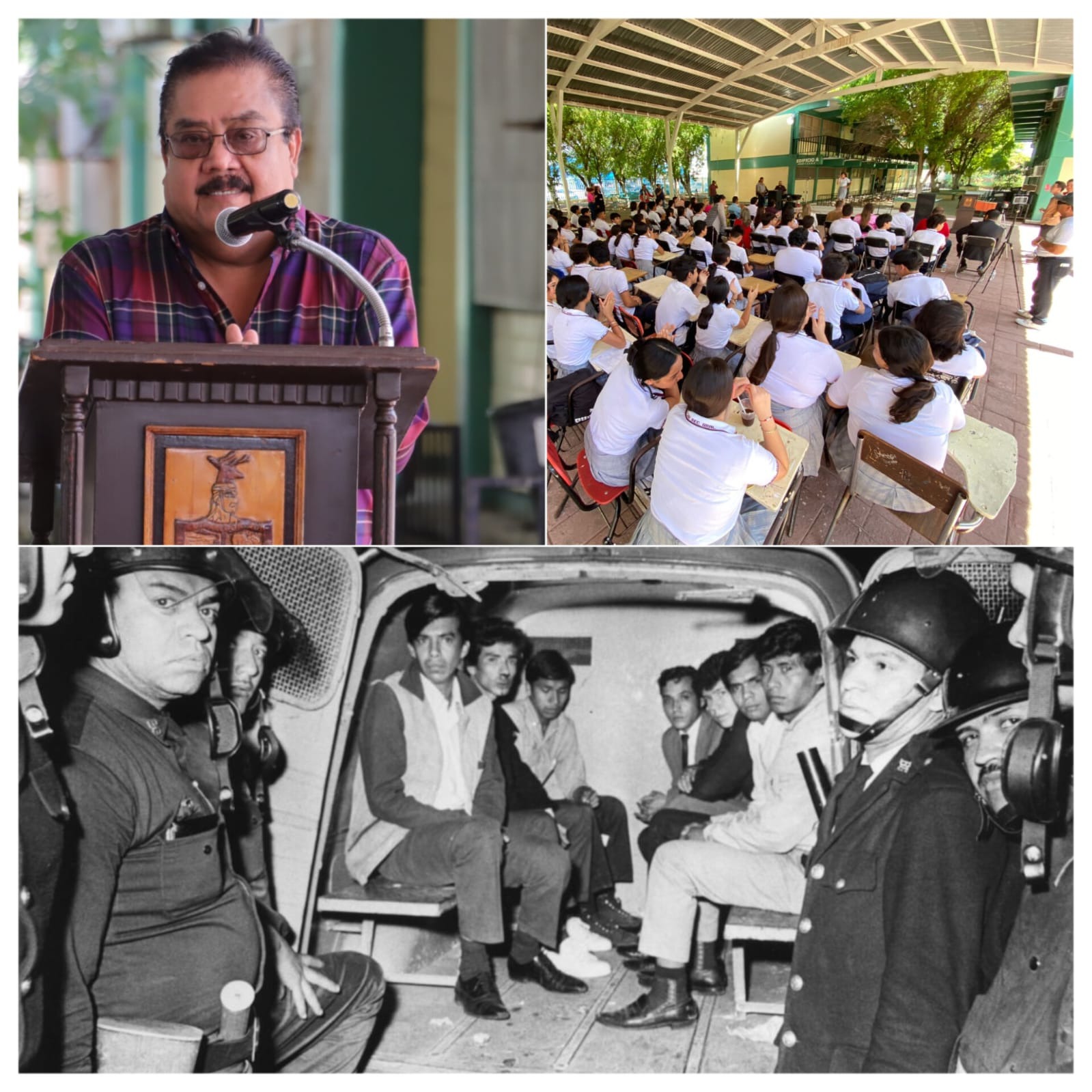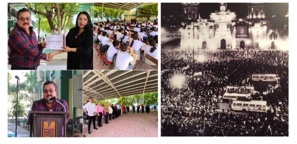 Ante la comunidad escolar de la Escuela Secundaria General número 4, “Profesor José L. Guerra Aguiluz”, el regidor Fernando González Meza, en representación del Alcalde Javier Lamarque, al fungir como orador oficial de este evento, manifestó que hoy se cumplen 56 años de aquel sangriento episodio en el que cientos de estudiantes universitarios de la Universidad Autónoma de México (UNAM) y del Instituto Politécnico Nacional (IPN), acompañados de profesores, intelectuales y trabajadores, se reunieron en un mitin hacia la plaza de Las Tres Culturas para exigir mayores libertades civiles y la liberación de presos políticos, acto por el que fueron ultimados.