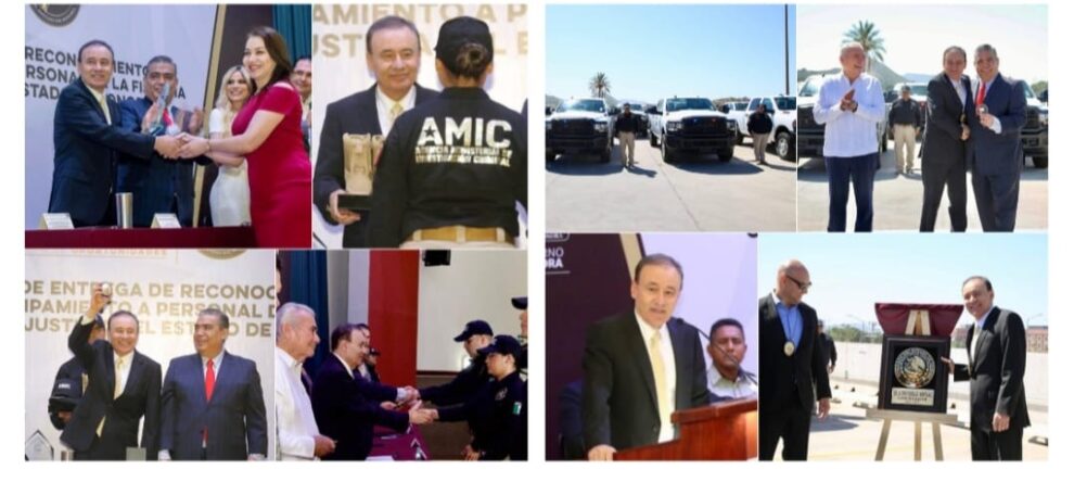 HERMOSILLO, SONORA. 3 DE OCTUBRE DE 2024.- Con el fin de contribuir al desarrollo y profesionalización de las corporaciones de seguridad encargadas de salvaguardar la integridad de las familias sonorenses, preservar el orden y la paz social, el gobernador Alfonso Durazo Montaño encabezó la ceremonia de entrega de reconocimientos, estímulos y equipamiento a personal de la Fiscalía General de Justicia del Estado de Sonora.