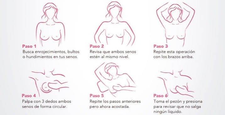 Mencionó que los principales síntomas en una persona son hundimiento del pezón, secreción anormal, dolor, bultos en la mama o debajo de la axila, aumento del grosor en una parte de la mama e irritación, hundimientos, enrojecimientos o descamación en la zona.Asimismo, puntualizó la importancia de la autoexploración, ya que esa es la mejor manera de prevención, además de tener un estilo de vida saludable, realizando ejercicio físico y manteniendo un peso sano, además de la ingesta suficiente de fibra, frutas y verduras, evitando consumir embutidos como salchichas o jamón y cocinar la comida en carbón.