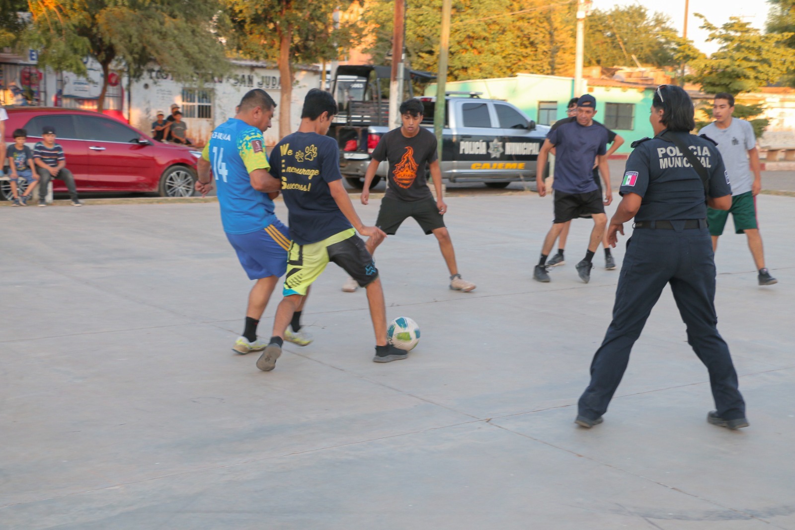 CIUDAD OBREGÓN, SONORA. 11 DE OCTUBRE DE 2024.– Con el fin de estrechar lazos entre las y los ciudadanos y la corporación policial, la Secretaría de Seguridad Pública Municipal, se reunió con vecinas y vecinos de la comisaría de Providencia y, posteriormente, se organizó un encuentro deportivo entre jóvenes y policías.