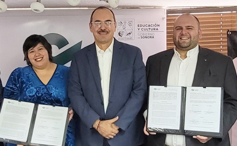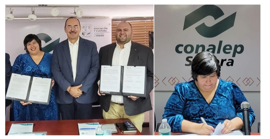 Luisa Cristina Rodríguez Ibarra, directora general del Conalep Sonora y Julio César Arballo, presidente de Canirac, firmaron un convenio de colaboración como parte del compromiso entre ambas instituciones para fortalecer la vinculación de los sectores productivo y educativo.