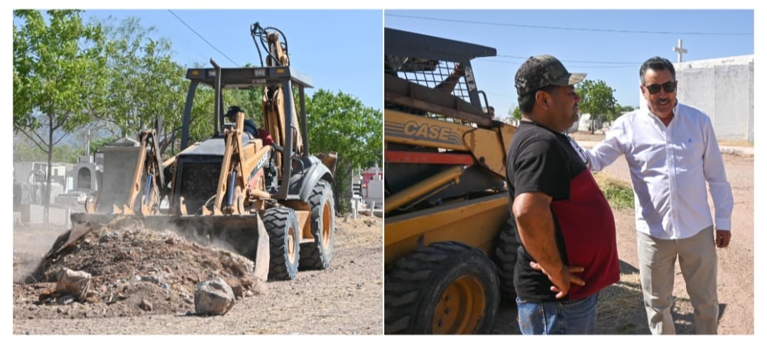CIUDAD OBREGÓN, SONORA 15 DE OCTUBRE DE 2024.- Con el objetivo de corroborar que las familias que visitarán los panteones el próximo 1 y 2 de noviembre con motivo del Día de Muertos, se sientan en un ambiente limpio y seguro, el Alcalde Javier Lamarque, realizó un recorrido de supervisión en los panteones municipales, donde, sin contratar personal ni maquinaría externa, se llevan a cabo trabajos de limpieza y preparación de calles.