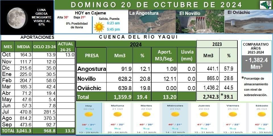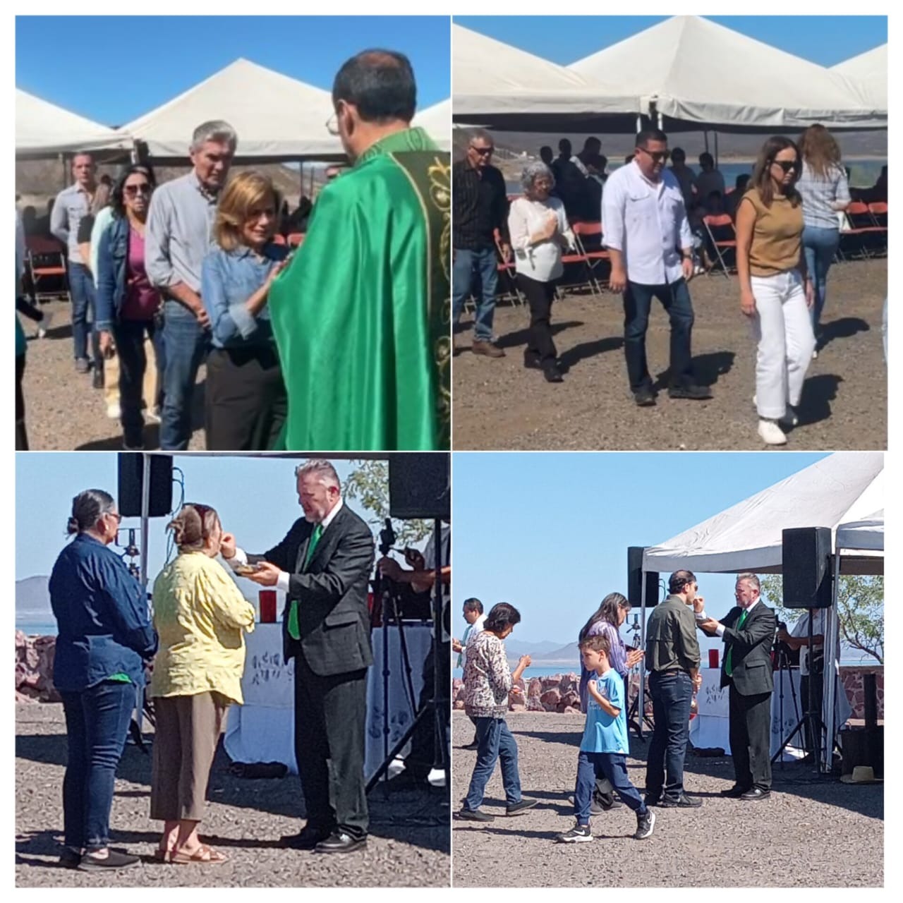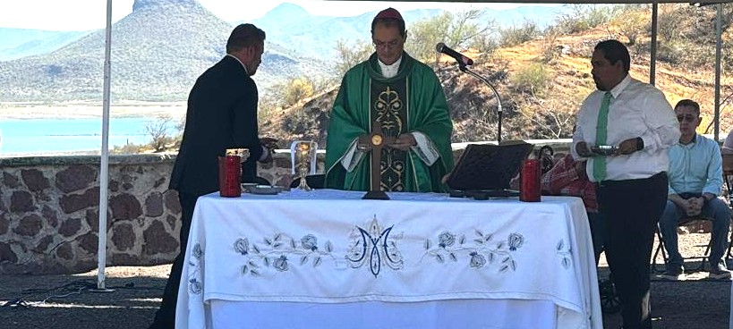 Por Alejandro Robles Ruiz….CIUDAD OBREGÓN, SONORA. 20 DE OCTUBRE DE 2024 .– Con el escenario que luce actualmente la Presa Álvaro Obregón, este día domingo, se realizó la Santa Misa por el ´´Don de la Luvia´´ oficiada por el Obispo de la Diósecis de Ciudad Obregón, Felipe Pozos Lorenzini, donde acudieron los cajemenses en su mayoría productores agrícolas del Valle del Yaqui.