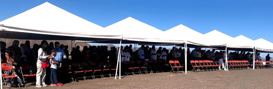 En esta ocasión, en la misa especial por el ´´Don de la Lluvia´´, los ciudadanos de la localidad entre ellos agricultores, ganaderos, comerciantes, industriales, prestadores de servicio y de diversos organismos de la sociedad civil, pidieron por la lluvia en esta aérea icónica del Oviachic.