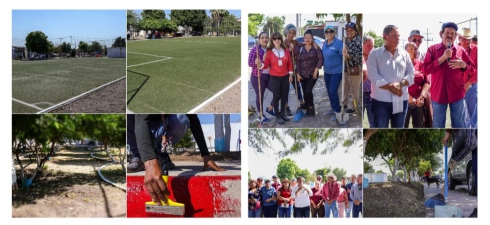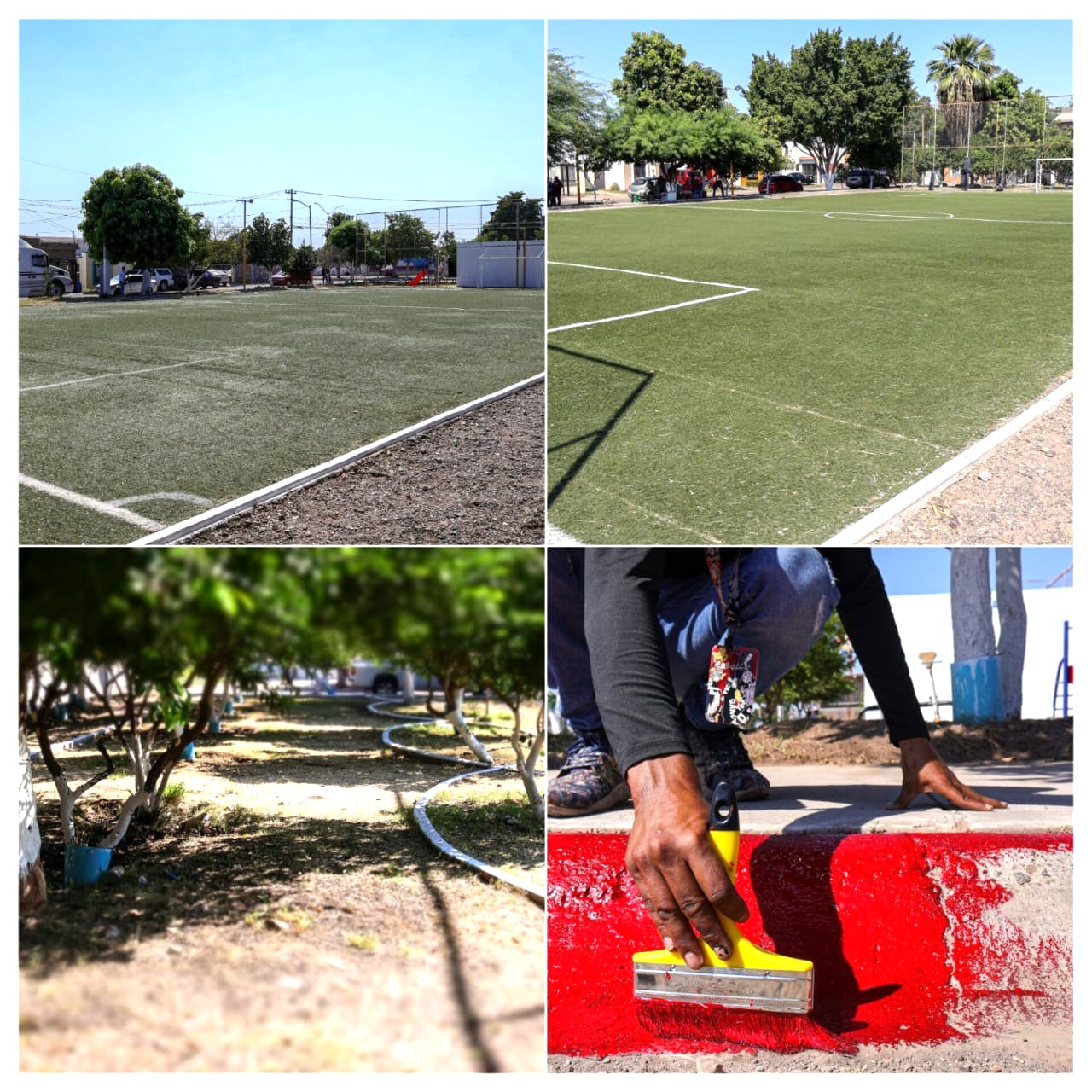 La rehabilitación se realizó de manera coordinada con personal de la Secretaría de Marina, quienes implementaron limpieza en camellones situados en el Boulevard Villa Bonita, mientras que en la cancha deportivo personal de la Secretaría de Bienestar y Servicios Públicos, realizó labores de deshierbe, eliminación de cacharro, limpieza y trabajos de pintura.