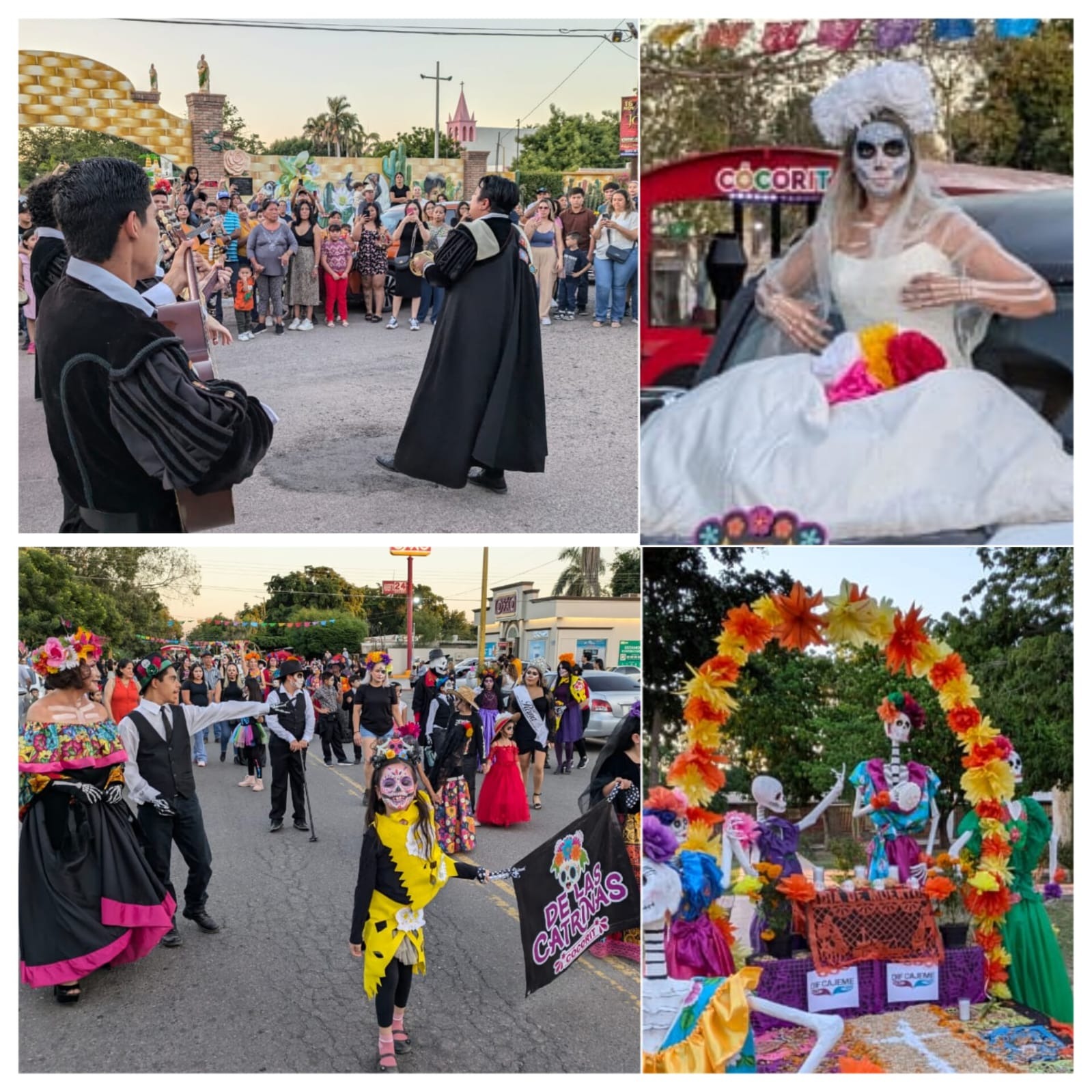 La sede principal fue la Comisaría de Cócorit, donde se congregaron decenas de personas para disfrutar de una serie de actividades culturales.El evento incluyó un vibrante desfile de catrinas y catrines, que reflejó la riqueza de nuestras tradiciones, además, se presentaron grupos de danza y música en vivo, destacando el talento local con actuaciones de cantantes cajemenses.