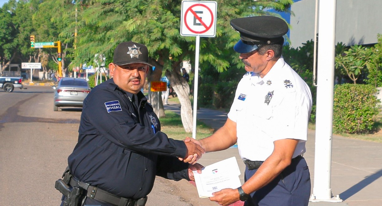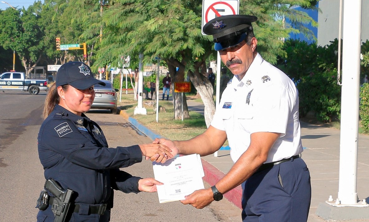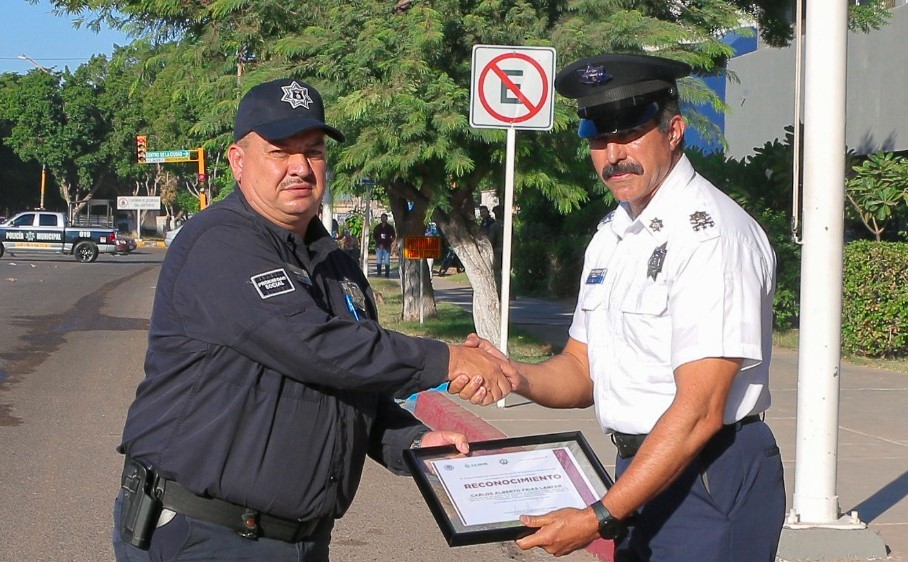 CIUDAD OBREGÓN, SONORA 28 DE OCTUBRE DE 2024.- En una emotiva ceremonia durante la realización del Lunes Cívico, la Secretaría de Seguridad Pública Municipal (SSPM), reconoció la labor de cuatro elementos quienes cumplieron sus 28 años de servicio en la corporación policial.