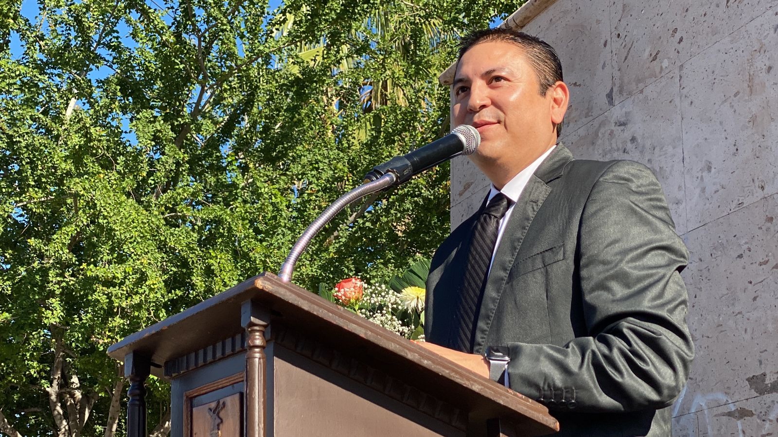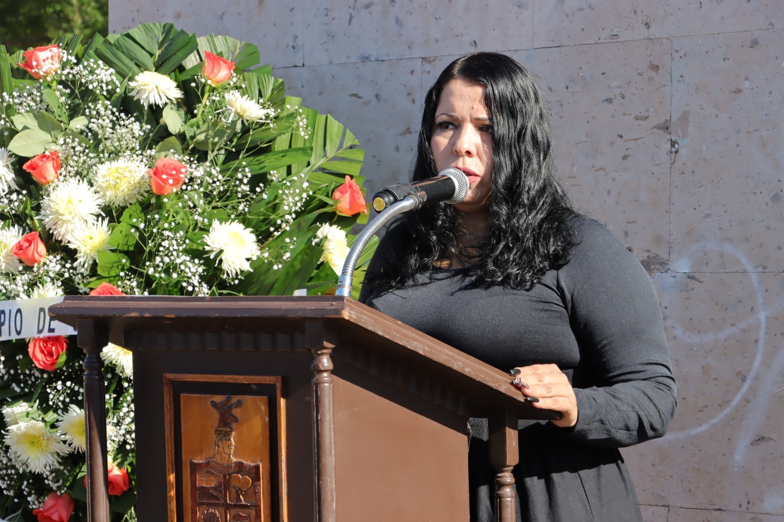 María Cristina Pérez Valenzuela, Subdirectora de Valores Cívicos en representación del Presidente Municipal, Javier Lamarque, recordó a Jesús García Corona como el Héroe de Nacozari, quien fue un maquinista mexicano que sacrifico su vida en un trágico accidente por salvar al pueblo de mencionado poblado.