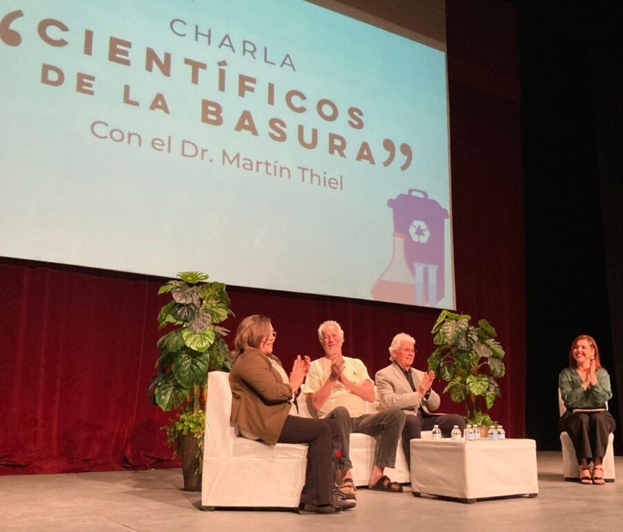 Durante el intercambio con los jóvenes, Martín Thiel expuso que el propósito es que ciudadanos puedan colaborar con científicos para que se pueda, a la larga, alcanzar este sueño como es el tener playas limpias sin basura en el mundo, libres de PET, de botellas, de bolsa de plástico, que tanto afectan a las especies.