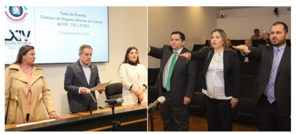 Hermosillo, Sonora; 12 de noviembre de 2024.- En cumplimiento del acuerdo aprobado en la sesión ordinaria de hoy, por el cual se designaron a los titulares de los órganos internos de control de organismos autónomos, Omar Del Valle Colosio, presidente de la Mesa Directiva, tomó protesta a los ciudadanos Juan Carlos Jáuregui Ríos, quien se desempeñará en el Instituto Estatal Electoral y de Participación Ciudadana (IEE Sonora); Ibeth Eréndira Fuentes Olivarría, en el Tribunal Estatal Electoral (TEE Sonora); y Mario Alberto Ferra Martínez Méndez, en la Fiscalía General de Justicia del Estado de Sonora (FGJE).