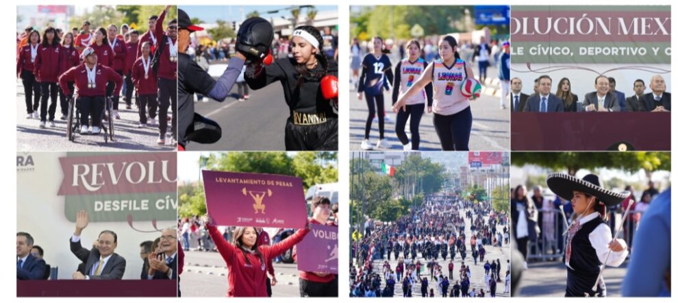 Un total de 4 mil 910 participantes, jóvenes atletas, equipos deportivos, estudiantes y artistas llenaron de color y energía el recorrido, que dio inicio a las 9:00 horas en la confluencia de la avenida Rosales y Luis Donaldo Colosio, mientras carros alegóricos recreaban escenas emblemáticas de la Revolución Mexicana con las melodías entonadas por la Banda Sinfónica del Estado de Sonora y la Banda de Guerra de la Secundaria Estatal #33. El público disfrutó de presentaciones artísticas, demostraciones deportivas y expresiones culturales que conectaron el pasado histórico con el entusiasmo del presente.