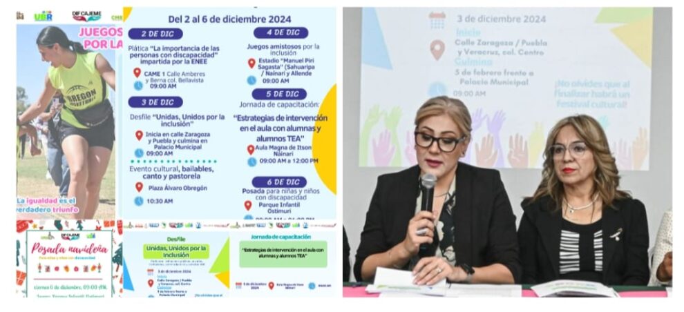 CIUDAD OBREGÒN, SONORA 27 DE NOVIEMBRE DE 2024.– DIF Cajeme a través del Consejo Municipal para la Integración Social de las Personas con Discapacidad (CMID) realizó una rueda de prensa para dar a conocer el itinerario de actividades educativas, culturales y recreativas que se llevarán a cabo durante una semana conmemorativa al Día Internacional de las Personas con Discapacidad, fecha que no sólo nos invita a reflexionar sobre la importancia de construir una sociedad más inclusiva y equitativa, sino también a reconocer los derechos, talentos y aportes de las personas con discapacidad para priorizar su integración y eliminar barreras, tanto físicas como sociales.