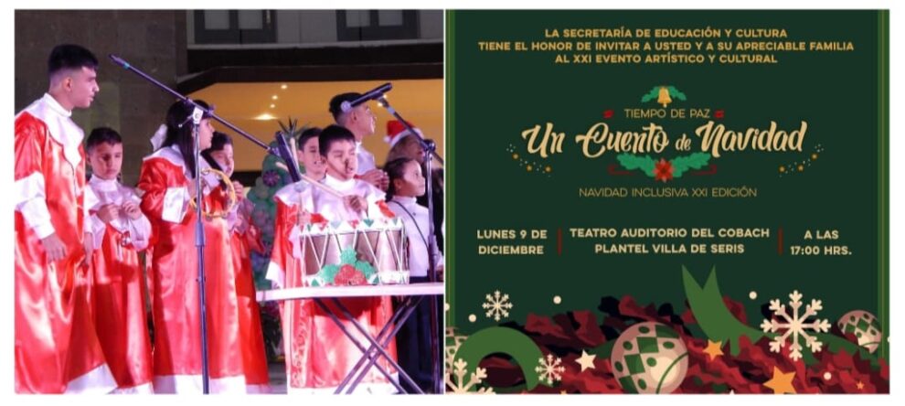 Hermosillo, Sonora; 6 de diciembre de 2024.- Para reforzar y fomentar valores como respeto, equidad, tolerancia, solidaridad, amistad e inclusión, la Secretaría de Educación y Cultura (SEC) invita al evento artístico y cultural “Tiempo de Paz. Un Cuento de Navidad”, Navidad Inclusiva XXI Edición.