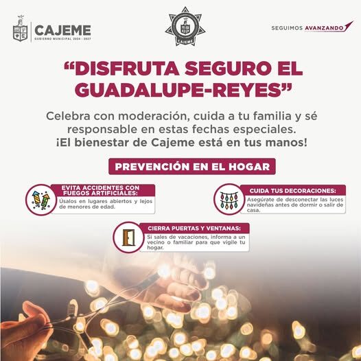 Asimismo, recomendó a la ciudadanía a extremar cuidados con los grupos vulnerables que son los menores de edad y adultos mayores, añadió que las principales recomendaciones son el abrigarse adecuadamente con varias capas de ropa, usar calefactores de manera segura, revisar y asegurar puertas, ventanas y techos para minimizar las corrientes de aire frío.