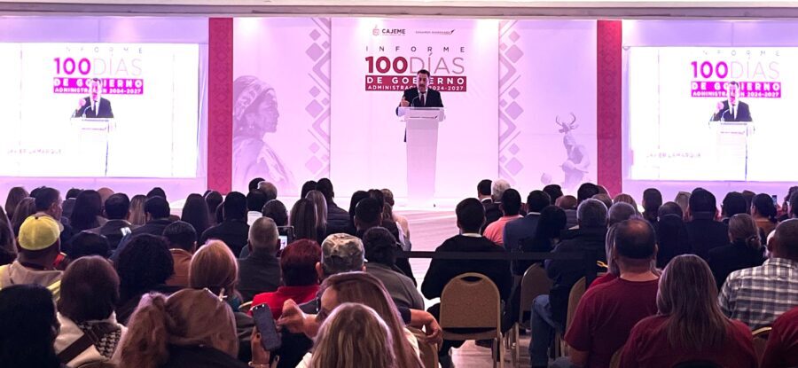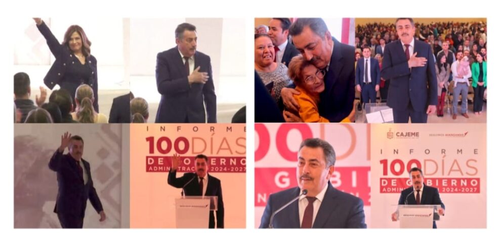 CIUDAD OBREGÓN, SONORA 25 DE ENERO DE 2025.- En el marco de los primeros 100 días de gobierno y refrendando los compromisos de la campaña que lo llevaron a ser el primer Presidente Municipal reelecto en Cajeme, el Alcalde Javier Lamarque presentó un informe sobre el estado que guarda la administración pública municipal durante sus primeros tres meses de trabajo, mismos que desplegarán todas las líneas de acción para el cumplimiento del Plan Municipal de Desarrollo del trienio 2024-2027.