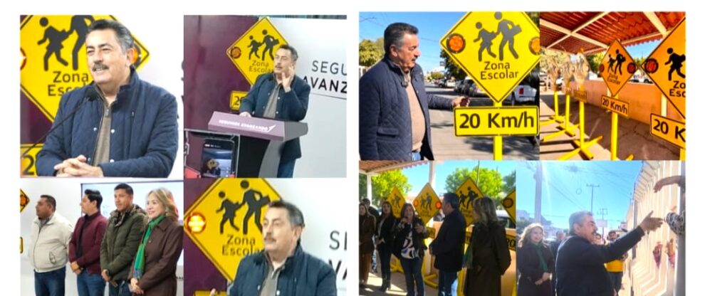 Durante el arranque de este programa, el Presidente Municipal hizo la entrega simbólica de los primeros cinco señalamientos verticales de reducción de velocidad en zonas escolares, en beneficio de la comunidad académica de cinco instituciones educativas, entre ellas la escuela Luis Encinas, Carlos M. Calleja, Jesús Aguirre, Amado Nervo y Adolfo López Mateos.