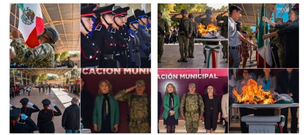 CIUDAD OBREGÓN, SONORA. 20 DE FEBRERO DE 2025.- En el marco del Día de la Bandera, se llevó a cabo en el plantel Cecytes Esperanza una respetuosa ceremonia de incineración de bandera, seguida de la entrega de nuevas insignias patrias a 19 escuelas de distintos niveles educativos del municipio de Cajeme.