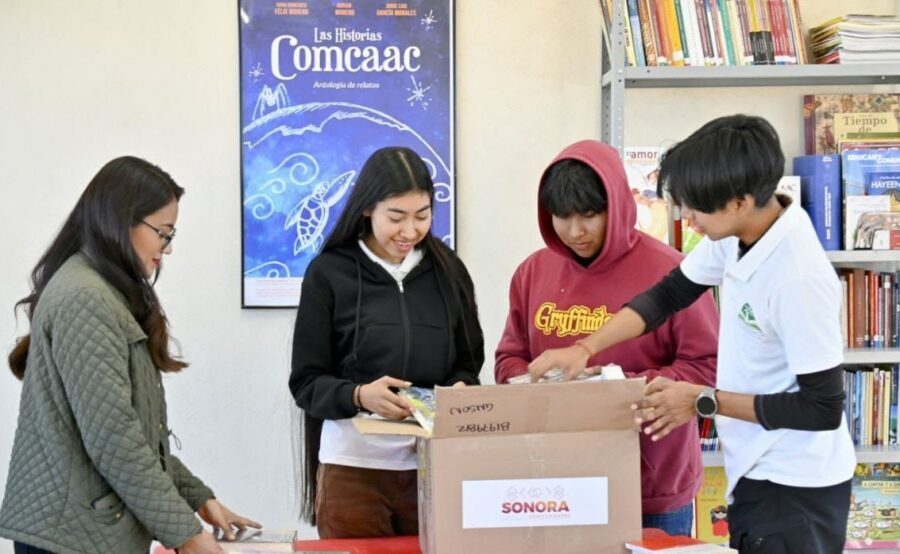 -El gobernador Alfonso Durazo fortaleció la biblioteca con la que cuenta el Telebachillerato de la comunidad de Desemboque, al entregar un compendio de 698 libros de autores mexicanos para impulsar el desarrollo educativo de los estudiantes Seris.