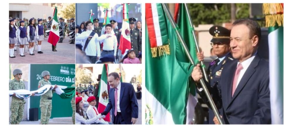 El mandatario sonorense indicó que la bandera nacional representa siglos de identidad, de compromiso, de lucha y aquello que refleja el juramento a la bandera, a la cual debemos honrar con un compromiso claro como ciudadanas y ciudadanos de bien.