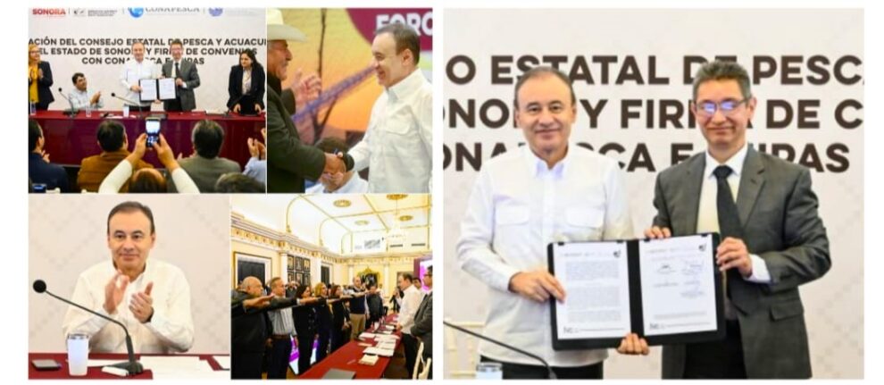 Con esta acción, el mandatario estatal reafirma su compromiso con el crecimiento sustentable del sector pesquero y acuícola en Sonora.El gobernador Durazo formalizó la firma de convenios de colaboración entre el Gobierno de Sonora, Conapesca e IMIPAS, acuerdos clave que fortalecerán el trabajo conjunto en beneficio del sector pesquero y acuícola, garantizando su crecimiento y sustentabilidad.