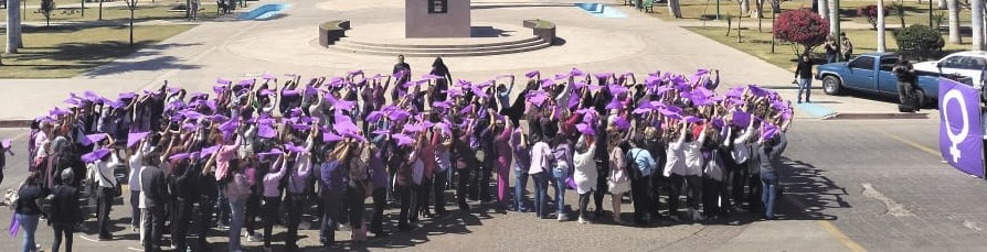 Al término, en alusión al Día Internacional de las Mujeres, se formó en el exterior de Palacio Municipal una figura humana del número 8 de color morado