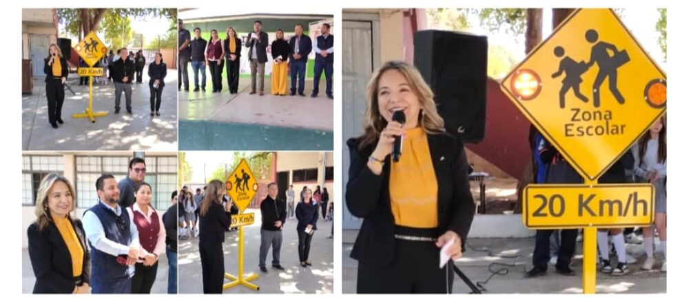 Zenaida Salido Torres, Titular de Educación Municipal, dijo que se entregaron señalamientos viales a las escuelas Secundaria Técnica #70 en la colonia Villas de San Antonio y la Secundaria #9 Profesor Manuel Robles Tovar de la comisaría de Esperanza.