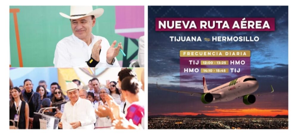 La conectividad aérea en Sonora sigue fortaleciéndose gracias a las gestiones del gobernador Alfonso Durazo, con una nueva ruta que conectará Hermosillo con Tijuana, a través de la Secretaría de Economía y Turismo (Setur), facilitando los viajes de negocios y placer desde Sonora.