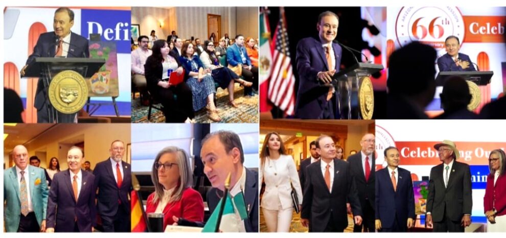 Phoenix, Arizona; 27 de junio de 2025.- Bajo la premisa de celebrar la relación comercial entre ambos estados fronterizos, que ha hecho del entendimiento binacional una política de Estado, el gobernador Alfonso Durazo Montaño y la gobernadora Katie Hobbs reafirmaron los lazos de cooperación y desarrollo transfronterizo que se han forjado a lo largo de 66 años de la Comisión Sonora–Estados Unidos, Arizona–México, bajo el lema “Celebrando nuestro legado. Definiendo nuestro futuro”.