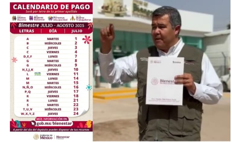 El Delegado Octavio Almada Palafox informó que los pagos se realizarán del 01 al 24 de julio El Gobierno de México, a través de la Presidenta Claudia Sheinbaum Pardo les cumple a los sonorense