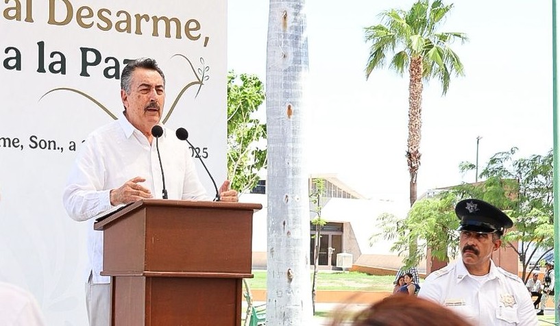 Este programa inició en la Ciudad de México, impulsado por la Presidenta Claudia Sheinbaum, y dio extraordinarios resultados que se busca alcanzar aquí en Cajeme, aquí en Sonora, donde sin coacción, sin coerción, el gobierno, las instituciones, las familias pueden contribuir a construir juntos la paz por la vía del desarme.