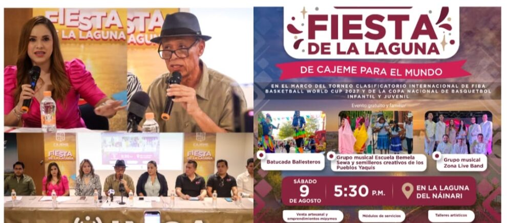 CIUDAD OBREGÓN, SONORA 6 DE AGOSTO DE 2025.- Con la finalidad de promover la integración familiar y cultural para las y los Cajemenses, así como para quienes visitan a nuestro bello municipio en el marco del FIBA Basketball World Cup Pre-Qualifiers rumbo a Qatar 2027 y a los asistentes de la Copa Nacional de Básquetbol Infantil y Juvenil Cajeme 2025, el Ayuntamiento a través del Instituto Municipal de Cultura de Cajeme en coordinación con la Secretaría de Desarrollo Económico y OCV Obregón, invitan a la “Fiesta de la Laguna: Cajeme para el Mundo”, a realizarse este próximo sábado 9 de agosto en el área del discóbolo.