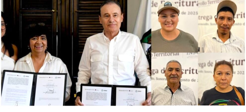Hermosillo, Sonora; 18 de agosto de 2025.- Con la entrega de escrituras que encabezó el gobernador Alfonso Durazo Montaño junto a la secretaria de Desarrollo Agrario, Territorial y Urbano, Edna Elena Vega Rangel en Hermosillo, se da solución al rezago de más de cuatro décadas que vivían familias por la falta de regularización de predios y viviendas en la capital.