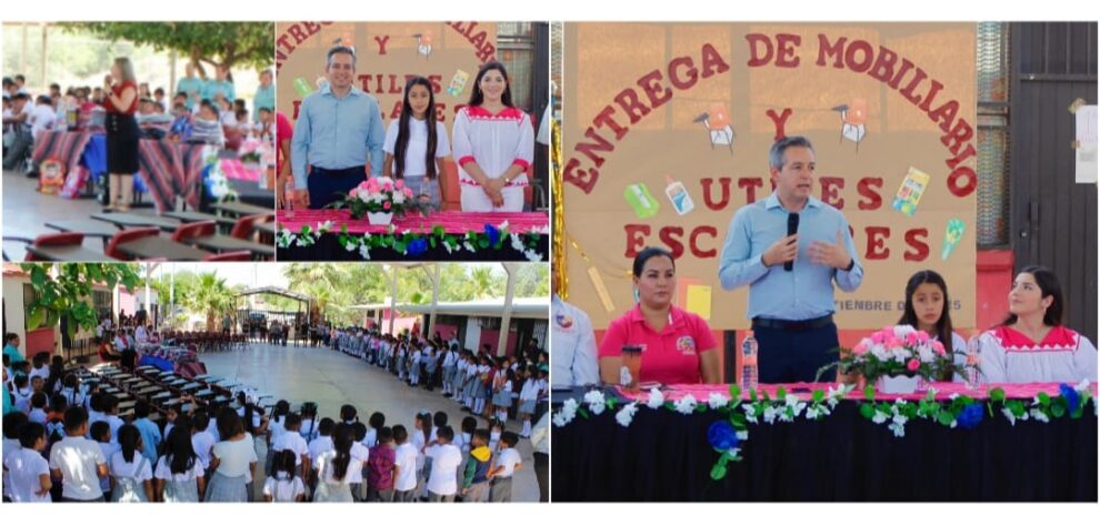San Miguel de Horcasitas, Sonora; 2 de septiembre 2025.- En el marco del inicio del nuevo ciclo escolar y con el objetivo de ayudar a mejorar las condiciones educativas de alumnas y alumnos, el diputado Omar Del Valle Colosio (PVEM) encabezó la entrega de 80 mesabancos en la escuela primaria indígena Fortunato Siaruqui Quijano, ubicada en la comunidad de Villa Pesqueira, del municipio de San Miguel de Horcasitas.