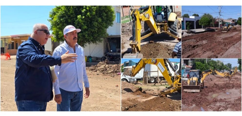 Inspeccionando la obra que comprende de la calle Las Palmas entre Coahuila y Triticale, donde se trabaja en la rehabilitación por completo de la red hidrosanitaria y se procederá a la pavimentación.