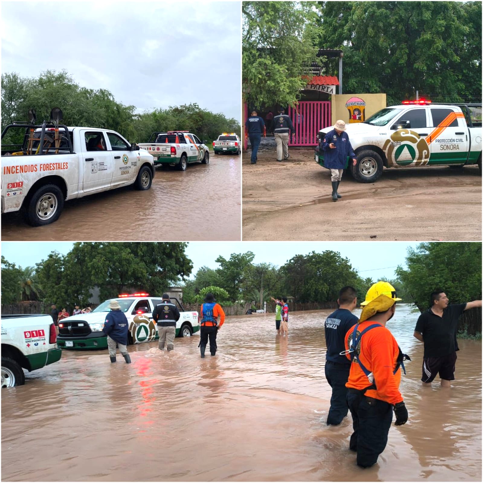 Así mismo, informó que en Guaymas se presentaron encharcamientos sin mayores consecuencias y que el bordo de Ortiz cumplió su función de contención. En Ciudad Obregón, pese a la intensa lluvia de 96 mm, no se reportaron daños graves; en Navojoa se registraron inundaciones sin gravedad en áreas rurales, mientras que en Huatabampo se registraron acumulados considerables en una pequeña zona urbana.En Álamos, donde la precipitación acumulada alcanzó los 125 mm, se realizó de manera preventiva la evacuación de 60 personas.