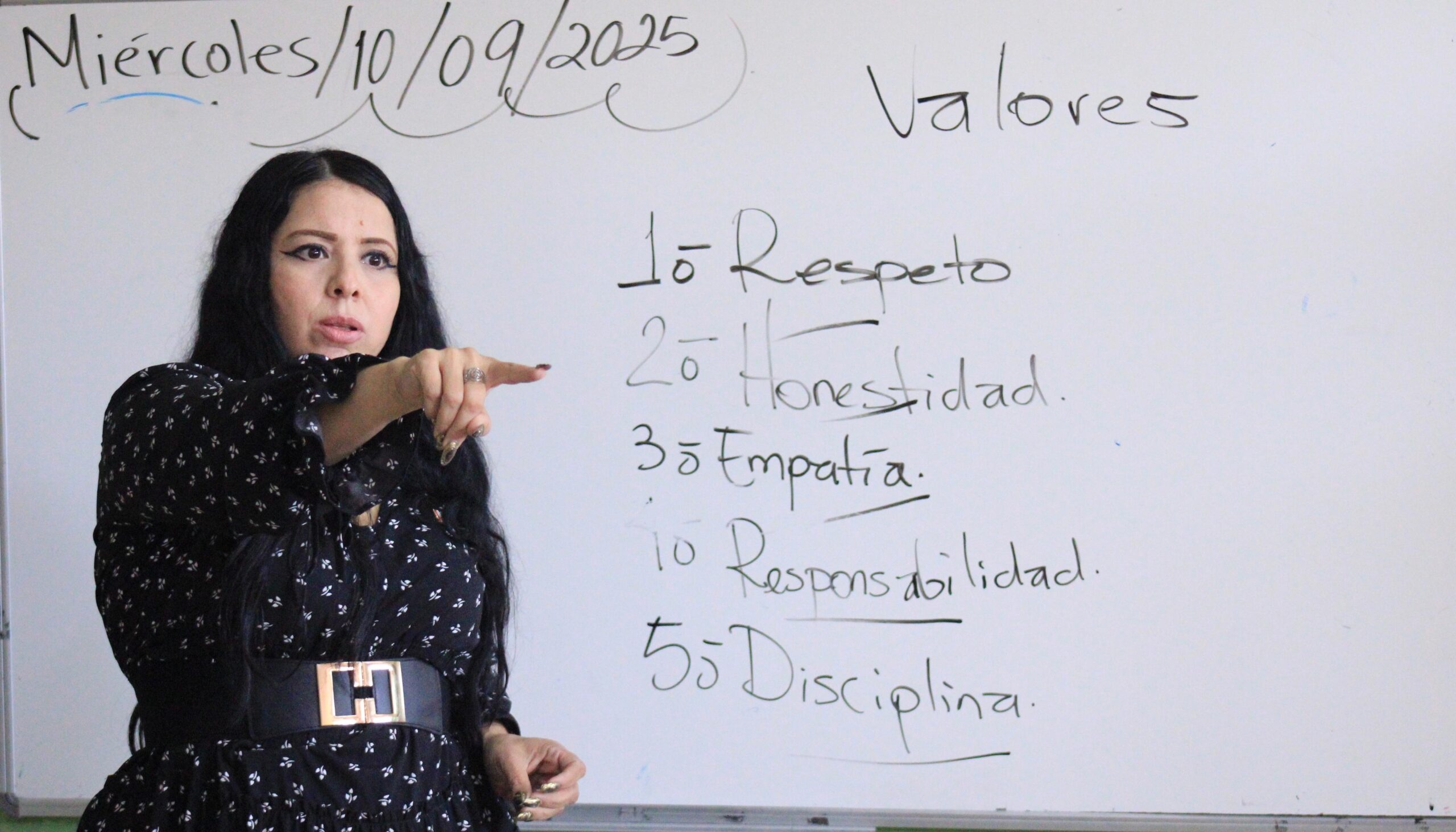 María Cristina Pérez Valenzuela, Subdirectora de Valores Cívicos, al emitir la charla explicó que esta actividad busca acercar a las y los estudiantes al conocimiento de los valores, de manera que puedan aplicarlos en su vida diaria y crecer con bases sólidas para su desarrollo personal y social.