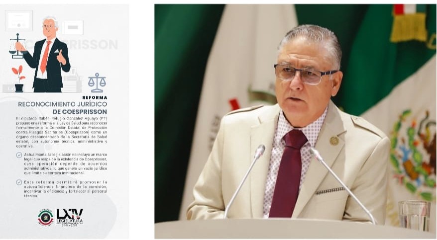 Hermosillo, Sonora; 11 de septiembre de 2025.- Con el objetivo de otorgarle pleno reconocimiento legal a la Comisión Estatal de Protección contra Riesgos Sanitarios (Coesprisson) como un órgano desconcentrado de la Secretaría de Salud estatal, el diputado Rubén González Aguayo propuso una reforma a la Ley de Salud.“Con esta medida, Sonora avanzará hacia un sistema sanitario más sólido, eficiente y transparente, en el cual la Coesprisson se convierta en un pilar estratégico para la protección de la salud de la población, alineándose al mandato constitucional y a las mejores prácticas nacionales”, manifestó.