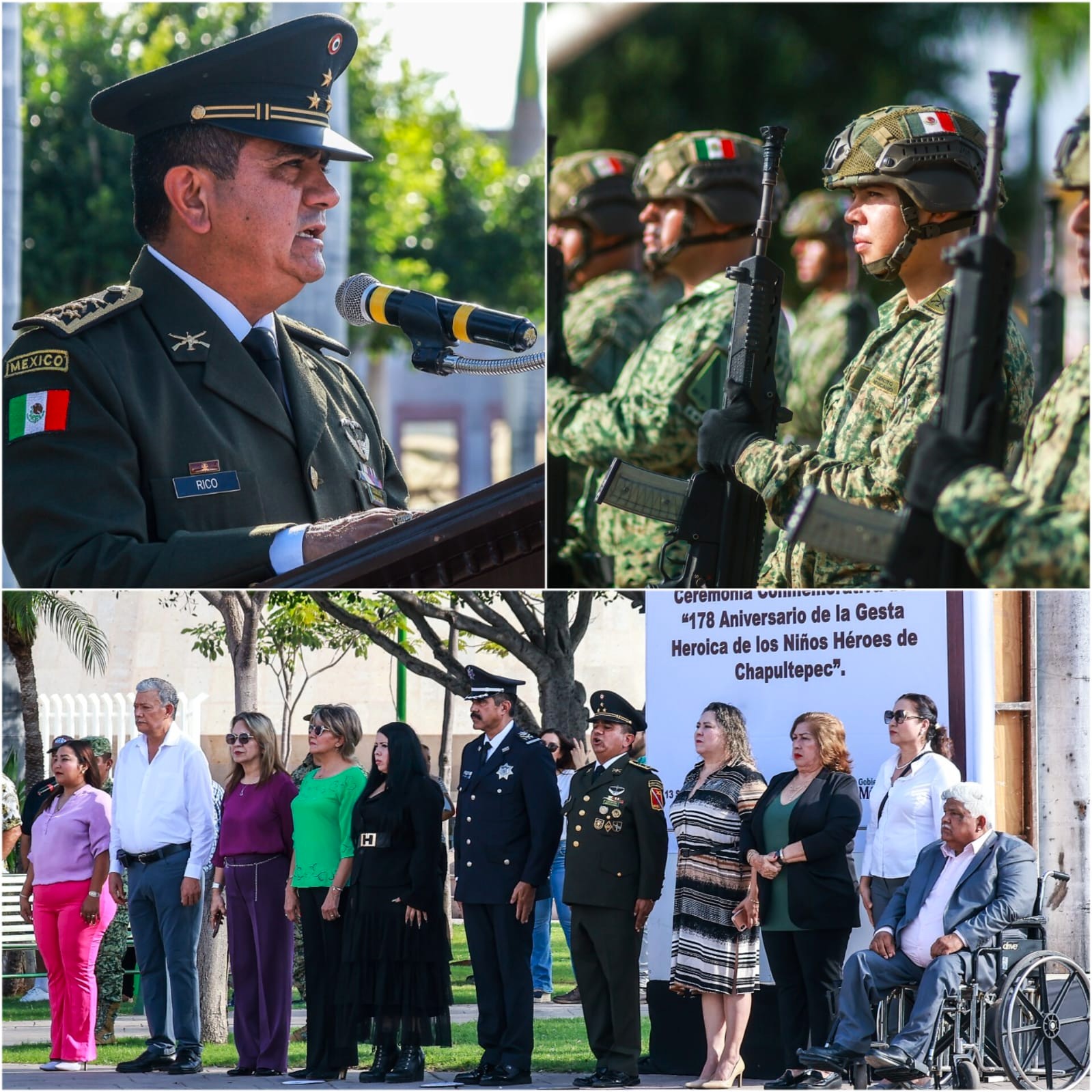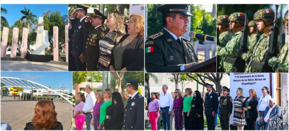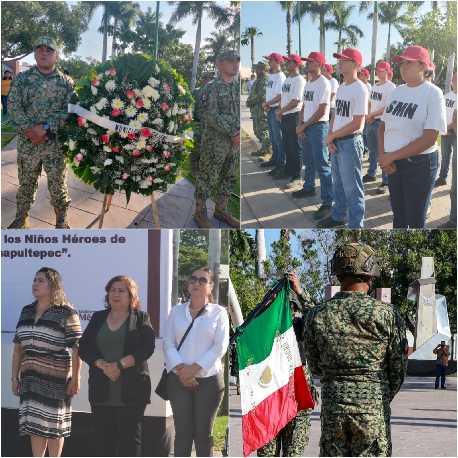 Desde la plaza Álvaro Obregón, donde el Lábaro Patrio ondeaba a media asta, la funcionaria recordó la férrea defensa de los Héroes de Chapultepec, realizó guardia de honor y depositó una ofrenda floral para recordar la hazaña del Teniente Juan de la Barrera y los Cadetes Agustín Melgar, Fernando Montes de Oca, Francisco Márquez, Juan Escutia y Vicente Suárez, mejor conocidos como Niños Héroes, quienes, al ofrendar su vida, son recordados como los mejores hijos de la patria.Hoy nos reunimos para honrar la memoria de seis jóvenes valientes que el 13 de septiembre de 1847 dieron su vida en defensa de nuestra patria en el castillo de Chapultepec, los niños héroes, como los conocemos, representan el espíritu indomable y el amor incondicional por México”, expresó