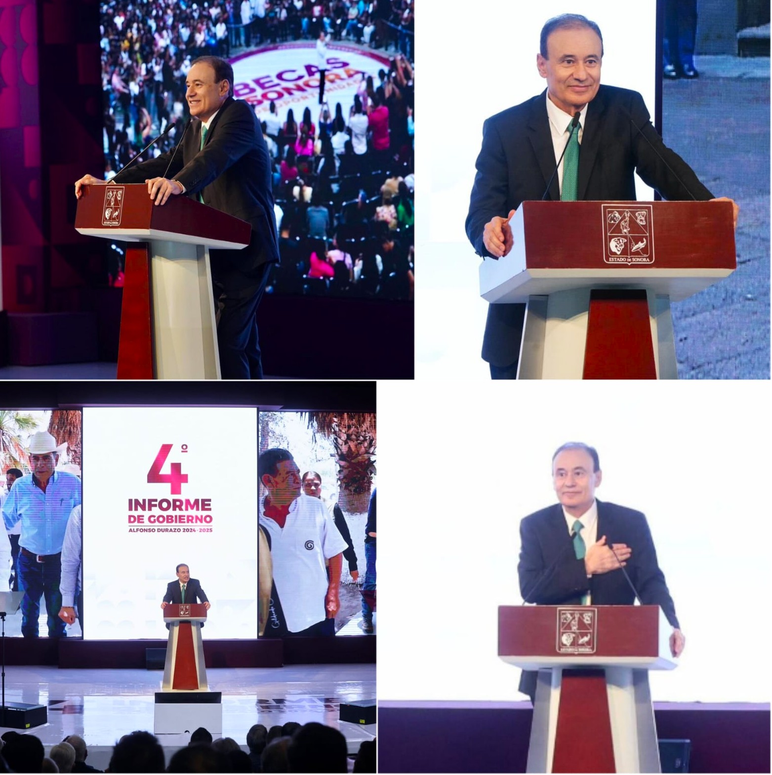 Hermosillo, Sonora; 13 de septiembre de 2025.- Con resultados que consolidan la transformación de Sonora en vivienda, salud, infraestructura, educación, energía, desarrollo urbano y bienestar social traducido en reducción histórica de la pobreza, el gobernador Alfonso Durazo Montaño presentó su Cuarto Informe de Gobierno, en el que garantiza que el estado avanza a paso firme hacia un futuro más próspero, justo y de mayores oportunidades para las y los sonorenses.