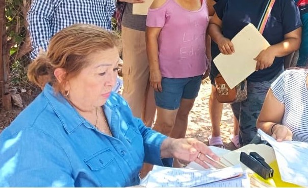 CIUDAD OBREGÓN, SONORA 20 DE SEPTIEMBRE DE 2025.-El acercar la atención a las familias vulnerables del municipio, ha sido una prioridad para el presidente Javier Lamarque y esa responsabilidad la asumimos en sindicatura municipal trabajando a ras de suelo, trabajando en territorio, cerca de la gente y fuera de escritorio, manifestó Josefina Leyva González titular de la dependencia municipal, luego de que el personal de solares continuó esta semana con el recorrido por colonias que pertenecen al municipio dentro del programa de escrituración gratuita de vivienda.