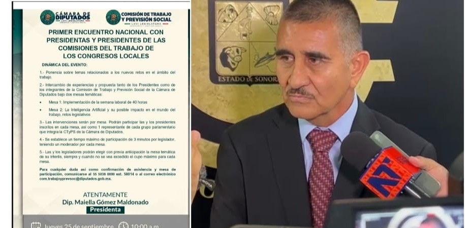 Hermosillo, Sonora; 23 de septiembre de 2025.– El diputado local Oscar Ortiz Arvayo, presidente de la Comisión de Asuntos del Trabajo en el Congreso del Estado de Sonora y dirigente de la CTM Hermosillo, anunció su participación en el Primer Encuentro Nacional con presidentas y presidentes de las comisiones de asuntos del trabajo de los congresos locales, convocado por la Presidencia de la Comisión de Trabajo y Previsión Social de la Cámara de Diputados, a celebrarse este jueves 25 de septiembre en el Congreso de la Unión.