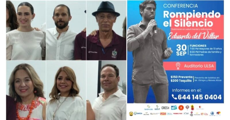 CIUDAD OBREGÓN, SONORA 23 DE SEPTIEMBRE DE 2025.- Con el objetivo de ofrecer un testimonio y herramientas a la sociedad en temas de adicciones que fortalezca la esperanza de vida en adolescentes, jóvenes, madres y padres de familia y con ello lograr una comunidad más sana en todos los aspectos mediante un constante trabajo de apoyo psicológico, el Ayuntamiento de Cajeme, a través del Instituto de Cultura Municipal y en coordinación con la organización Familia Unidad de Regnum Christi, invitan a la población en general a que asistan a la conferencia “Rompiendo el Silencio”, misma que presentará Eduardo del Villar el martes 30 del presente mes, a partir de las 19:00 horas en el Auditorio de ULSA Noroeste.
