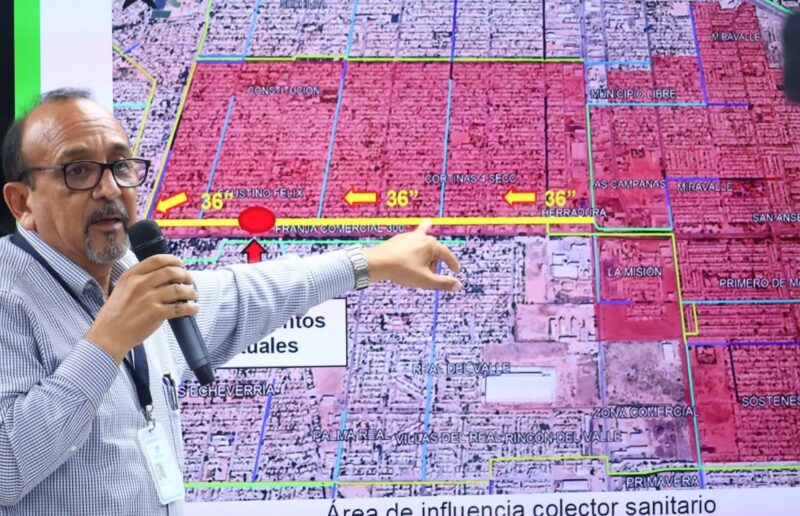 También se avanza en la construcción del colector Urbis-Misionero, obra que dará solución a un problema de años en colonias como Urbis y Cedros; mientras que en la colonia Benito Juárez se inició la colocación de tubería por debajo de las vías del tren para mejorar el drenaje del sector oriente, de igual manera, se llevan a cabo trabajos en la calle Obrero Mundial de la colonia Primero de Mayo y en la circunvalación del Parque Industrial.