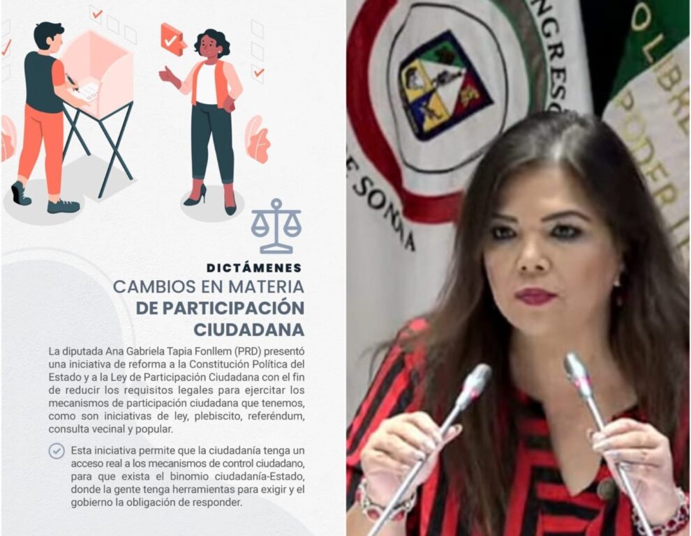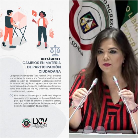 La iniciativa contempla una reforma constitucional al artículo 53, así como cambios a diversos artículos de la Ley de Participación Ciudadana del Estado de Sonora.“Queremos que los ciudadanos tengan herramientas reales para exigir y participar. No podemos permitir que la democracia se convierta en una simple pantalla mientras se consolida un autoritarismo sin control social”, puntualizó.Con esta propuesta, se busca rescatar la democracia sonorense, incentivando la participación ciudadana activa y fortaleciendo el binomio sociedad–Estado.