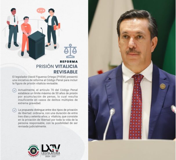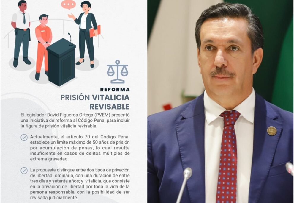 Figueroa Ortega precisó que la iniciativa no plantea prisión vitalicia absoluta, sino plantea una versión revisable en congruencia con la Constitución y criterios internacionales, como los del Tribunal Europeo y la Corte Interamericana de Derechos Humanos.Entre los puntos centrales de la propuesta se encuentra la reforma a los artículos 21 y 70 del Código Penal estatal; la creación de la figura de Prisión Vitalicia Revisable y la ampliación del tope de penas acumulables a 70 años.