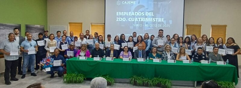 CIUDAD OBEREGÓN, SONORA. 30 DE SEPTIEMBRE DE 2025.- Por destacar y dar lo mejor de sí dentro de sus áreas de trabajo, las autoridades municipales entregaron reconocimiento a personal sobresaliente durante el segundo cuatrimestre mayo-agosto de 2025, quienes cumplieron con los indicadores de asistencia, puntualidad, portación de uniforme, buen servicio, capacitación, humanidad y compañerismo, con la finalidad de motivarlos a seguir creciendo y sumando esfuerzos en lo laboral.