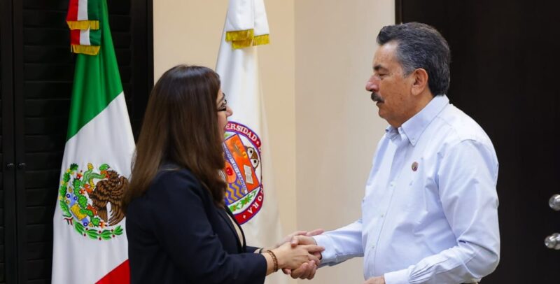 HERMOSILLO, SONORA 2 DE OCTUBRE DE 2025.- El Presidente Municipal de Cajeme, Javier Lamarque, sostuvo un encuentro con la Rectora de la Universidad de Sonora, Dena María Jesús Camarena Gómez, en el que se acordaron acciones conjuntas en beneficio de la comunidad.