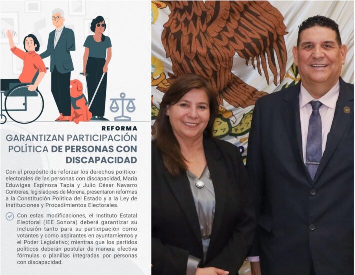 Hermosillo, Sonora; 9 de octubre de 2025.- Con el compromiso de fortalecer un marco jurídico más incluyente y garantizar el ejercicio pleno de los derechos político-electorales de las personas con discapacidad, las y los diputados Julio César Navarro Contreras y María Eduwiges “Vicky” Espinoza Tapia presentaron una iniciativa de reforma a la Constitución Política del Estado de Sonora, así como a la Ley de Instituciones y Procedimientos Electorales del Estado.