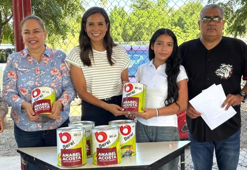 CIUDAD OBREGÓN, SONORA 13 DE OCTUBRE 2025.- Con el objetivo de contribuir a la mejora de las instituciones educativas en la localidad, la diputada federal, Anabel Acosta Islas, entregó alrededor de 750 litros de pintura gracias al programa “Dale vida a tu escuela”, lo que beneficiará a más de 5 mil alumnos de diferentes escuelas.